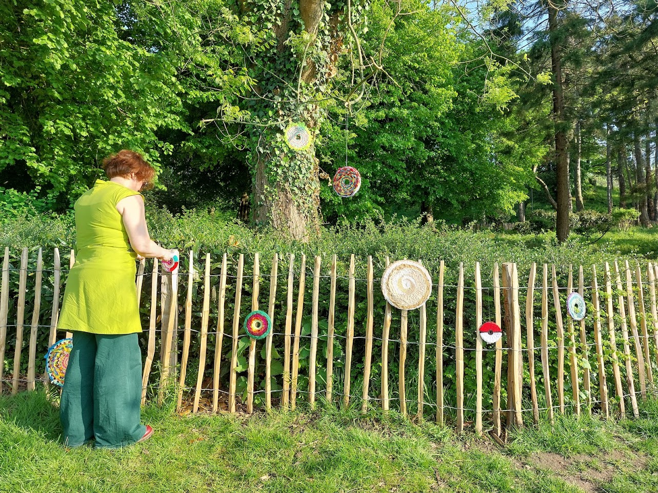 Installation aérienne "Résonance" : Découvrez une exposition où les vinyles et CD, autrefois supports sonores, se métamorphosent en une éblouissante tapisserie de fils colorés. Fruit de mains diverses, chaque œuvre noue des fragments de nos histoires personnelles et collectives, créant une nouvelle narration visuelle et tangible. Cette mosaïque d'expressions, née de multiples ateliers, offre un dialogue profond sur la mémoire, la transformation et la résilience, invitant chacun·e à contempler comment le passé peut être réinventé pour tisser l'avenir.